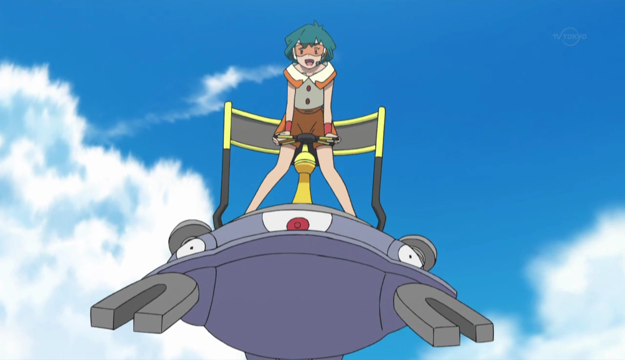 Durante el evento se la puede ver otra vez montando sobre su Pokémontura Magnezone.