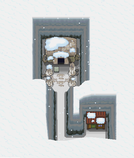 Una PC, un anciano y su Abra que permite al jugador ser transportado de vuelta a casa. Así como la misma Cintia, después de dar a conocer algo de lo que descubre tras investigar las ruinas, se da cuenta de la fuerte energía proveniente de la Poké Ball del jugador sintiendo la presencia del poder de Dialga, Palkia y Giratina similares pero no lo mismo, de ahí pide al jugador si tiene tiempo que la acompañe a las ruinas, bajo la intuición de que algo ocurrirá cuando el jugador y Arceus estén en el Estrado.