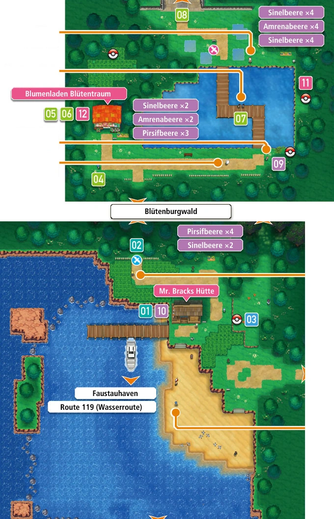 En Pokémon Rubí Omega y Pokémon Zafiro Alfa la función CartoNav dice: «Sendero muy colorido rodeado de agua y vegetación que une los dos extremos del Bosque Petalia»