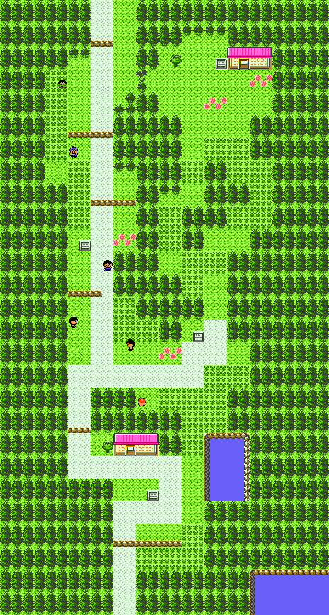 Antes de que la ruta se divida en dos grandes tramos, se encuentra la casa de un señor que te regalará una baya, y también obtendrás otra del árbol que está al lado. En Pokémon Oro HeartGold y Plata SoulSilver el hombre de la casa de dará la Caja bonguri para que puedas empezar a recolectar Bonguri.