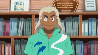 En el EP945 se encuentra dando clases a los estudiantes de la escuela Pokémon, detallando sobre las formas regionales, para ello pone como ejemplo un Exeggutor de Alola y les explica las diferencias con el Exeggutor que Ash conocía comúnmente, esto causo el asombro en Ash, el cual por curioso intento tocarle la cola al Exeggutor y este respondió lanzándolo por los aires.