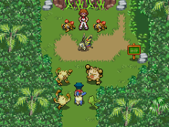 En cierto capítulo de la historia tienes que llevar al mecánico del Aquamóvil hacia la parte oeste de la selva para que recoja las piezas del Aquamóvil, evitando los Pokémon bicho, ya que, les tiene fobia. Si te encuentras con uno, volverás a la entrada de la selva. Al final debes enfrentarte a cuatro Magikarp y un Gyarados enfadados.