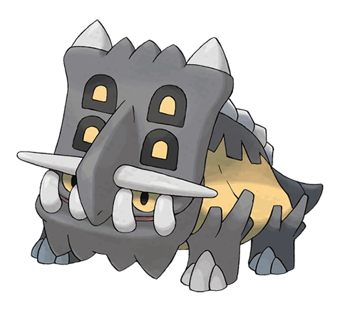 Un Pokémon herbívoro de carácter afable. Con su dura protección facial podía desenterrar las raíces de los árboles para comérselas. | |