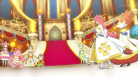 Pertenece a una artista/estrella que participa en el Gran espectáculo Pokémon de Frey. Consiguen pasar la primera rondar y llegar a la final, pero pierden frente a Serena. Reaparece en el EP915 donde su artista/estrella, que había conseguido las tres llaves princesa, lo usa en el Gran espectáculo Pokémon de Glorio. Se sabe que no consiguieron pasar a la semifinal (ver imagen