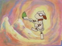 De la punta de su cola segrega unos fluidos que utiliza para pintar y marcar así su territorio. La pigmentación del fluido cambia según sus emociones y sentimientos, de forma que el color que usa en sus dibujos es el reflejo de su estado de ánimo. Busca continuamente nuevas aventuras para aumentar las combinaciones de colores.
