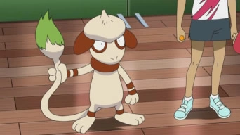 Pertenece a Liam (anime), participa en el Torneo de ping pong Pokémon y lo gana.