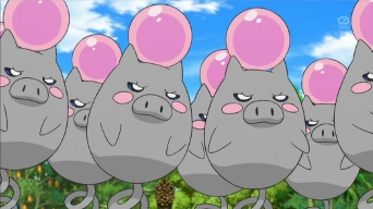 Un grupo de Spoink aparecen siendo maltratados por un Grumpig, pero son salvados por Ash y sus amigos.