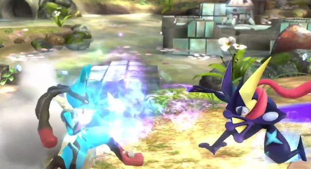 - Greninja: este Pokémon, última fase evolutiva del Pokémon inicial de agua Froakie, es un nuevo personaje en esta entrega. Sus movimientos especiales predeterminados son shuriken de agua, hidrobomba, sustituto o sombra vil, siendo su Smash Final el llamado Técnica Floral Ninja.