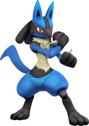 - Lucario: este personaje debutó en Super Smash Bros. Brawl. Es uno de los personajes pertenecientes al universo Pokémon que aparece en el juego. Sus movimientos especiales predeterminados son esfera aural, palmeo, velocidad extrema y doble equipo. Masahiro Sakurai, director del juego, ha confirmado que su aura será incrementada en esta versión (cuanto más porcentaje acumulado tenga más aumenta su poder). Lucario podrá megaevolucionar a Mega-Lucario al realizar su Smash Final.