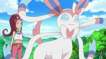 Es el Pokémon de Penélope, que utilizó para luchar contra el Froakie de Ash. Más tarde, Sylveon y Pikachu son robados por el Team/Equipo Rocket, pero fueron rescatados.