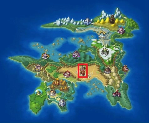 En este campo de batalla aparece el Pokémon legendario Groudon. Para desbloquearlo es necesario terminar el episodio de Shingen y tener los edificios al nivel 3.