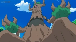 | Pokédex de Ash | EP842 | ES: Trevenant, el Pokémon árbol viejo. Trevenant de tipo fantasma y planta puede controlar los árboles. Atrapa a todo aquel que provoca daños en el bosque y jamás lo deja escapar. |