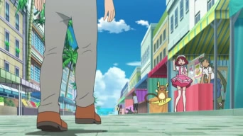 Aparece junto a su entrenador al lado del puesto de comida del Team/Equipo Rocket.