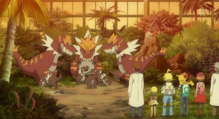 Después de ser rescatado del Team/Equipo Rocket los científicos recuperan a Tyrantrum y lo devuelven al laboratorio donde hay otros seis Tyrunt junto a otros tres Tyrantrum.