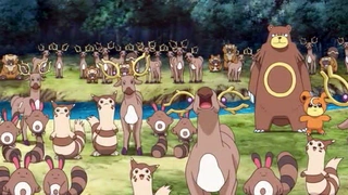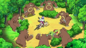 Una aterradora manada de Ursaring ataca una y otra vez a los protagonistas, y al Team/Equipo Rocket, hasta que consiguen, ayudándose los unos a los otros, salir de su bosque. Al final del episodio, Ash descubre el motivo de la ira de los Ursaring. Según el cartel que hay en los límites, se encuentran en época de apareamiento, momento en el que es extremadamente peligroso acercarse a ellos por su carácter.