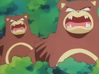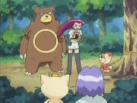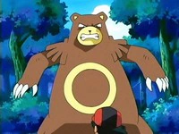 Un Ursaring sale en defensa de un Teddiursa que se habia asustado por culpa de Jessie. Al final del capítulo el Team/Equipo Rocket se ve rodeado por los compañeros de Ursaring temiendo que le atacaran.