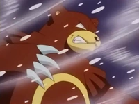 Aparece por sorpresa al principio del episodio, atacando a los personajes. Pero lo que es aún más sorprendente, es que al bañarse en las aguas termales se relaja por completo. Los protagonistas no dan crédito, pero las aguas tienen propiedades que calman a los Pokémon.