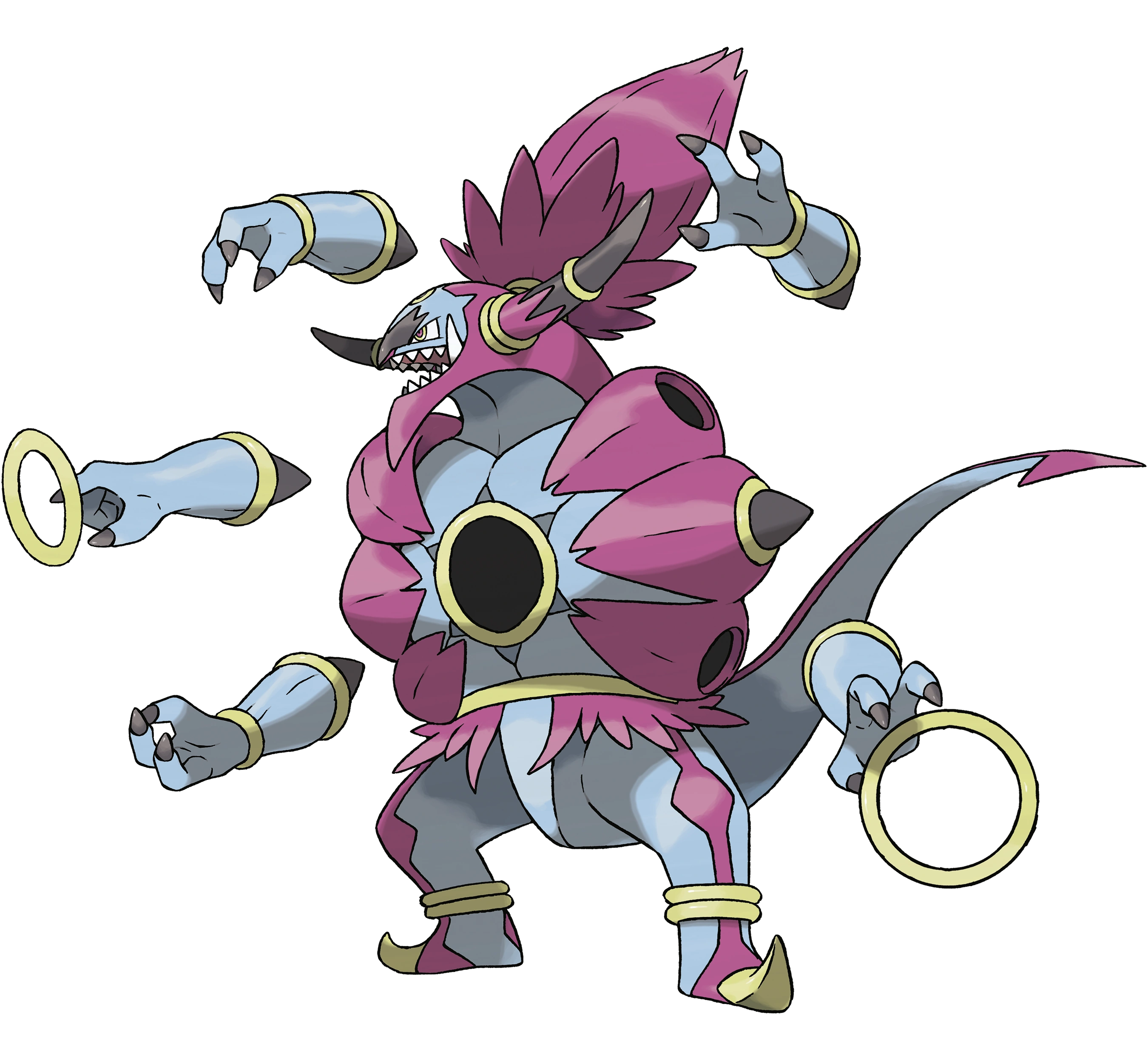 ![]() Hoopa (forma desatada) Tipo: Habilidad: Prestidigitador Peso: 490,0 kg Altura: 6,5 m Especie: Genio Burlón |