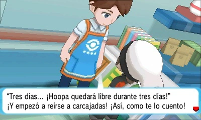 Ay... ¡Por fin tengo el día libre! ¡Qué ganas tenía! Pero qué corto se me va a hacer. Solo de pensar que mañana tengo que volver al trabajo me entra un bajón... Oye, ¿quieres que te cuente una buena? Es algo que me pasó un día que estaba solo aquí en la tienda... Era una de esas noches sin luna... oscura, oscura como el azabache... y había un algo siniestro en el ambiente que me puso los pelillos de punta. Cuando menos me lo esperaba... ¡Zas! ¡Se abrió la puerta de repente y me dio un susto que casi se me sale el corazón por la boca...! Cuando alcé la vista, vi a un viejito que se acercaba hacia mí medio cojeando... Al verlo acercarse así, tan despacico, medio arrastrando los pies, ya me estaban dando escalofríos. Cuando llegó hasta donde yo estaba, se paró y me mostró una caja que llevaba. Entonces me preguntó: “¿Sabes cuánto vale esta caja?” Y se me quedó mirando fijamente. ¡Ay, no veas el miedo que pasé! Pues... tiene pinta de ser muy valiosa...”, le contesté yo titubeando. Entonces, el viejito me sonrió y espetó: “¡Te la vendo! ¡Pero, en lugar de dinero, tendrás que darme todo lo que tienes en la tienda ahora mismo!” “¿Pero qué dice este hombre? ¡Está majareta!”, pensé yo, pero como estaba tan acelerado empecé a darle las Pociones y todo lo que tenía a mano para que se marchara y me dejara tranquilo. ¡Vete tú a saber lo que habría pasado si le digo que no! ¡Pues bueno está el barrio! ¡Anda cada loco suelto por ahí que yo no me fío ni un pelo! ¿Y qué te crees tú que pasó después? El hombre enfiló para la puerta, y antes de salir se dio media vuelta, me dirigió una sonrisa burlona y dijo: “Tres días... ¡Hoopa quedará libre durante tres días!” ¡Y empezó a reírse a carcajadas! ¡Así, como te lo cuento! ¿Tú sabes de lo que estaba hablando? No, ¿verdad? Pues yo tampoco, ¡pero figúrate que me dio tal escalofrío que casi me quedo tieso detrás del mostrador! Tuve que hacerme unas hierbas para que se me pasaran los nervios y quitármelo de la cabeza. Pero claro, luego, cuando estaba ya más tranquilo, me picó el gusanillo y tuve que mirar dentro de la caja... Chiquillo/a, ¿qué quieres? Que uno no es de piedra... Dentro había una vasija polvorienta que tenía una pinta muy rara. Me puse a tirar del tapón con cuidado para abrirla hasta que hizo un “¡puf!”... ¿Y a que no sabes tú lo que había dentro? ¡Nada, nada de nada! ¡Más vacía que la tripa de un náufrago! ¡¿Te lo puedes creer?! ¡Entonces me di cuenta! “¡Pero mira que eres tonto, Bernardo!”, me dije. “¡Te han timado pero bien!” Mira, hablando contigo me he desahogado. Para darte las gracias, te voy a regalar la vasija esa, que yo no la quiero para nada y a mí me trae malos recuerdos. Tengo que reconocer que aún me pregunto si de verdad no es más que una vasija mugrienta. No consigo quitarme de la cabeza lo que dijo el viejo: “Hoopa quedará libre durante tres días”.