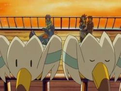 Aparece una bandada de ellos alrededor del barco en el que va montados Ash y sus amigos de camino al complejo turístico Paraíso Pokémon.