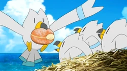 Aparecen varias veces volando en bandada a lo largo del episodio y tratando de evitar el gran diluvio creado por Kyogre primigenio.