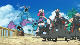 Son enviados por Wrap, una Recluta del Team Skull para combatir al Turtonator de Kiawe y al Pikachu de Ash, pero son derrotados con facilidad, por el movimiento z de dicho Turtonator.
