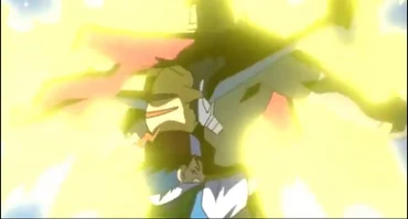 Basic then grabs the cage Pikachu is still in and transports him somewhere away from the field.