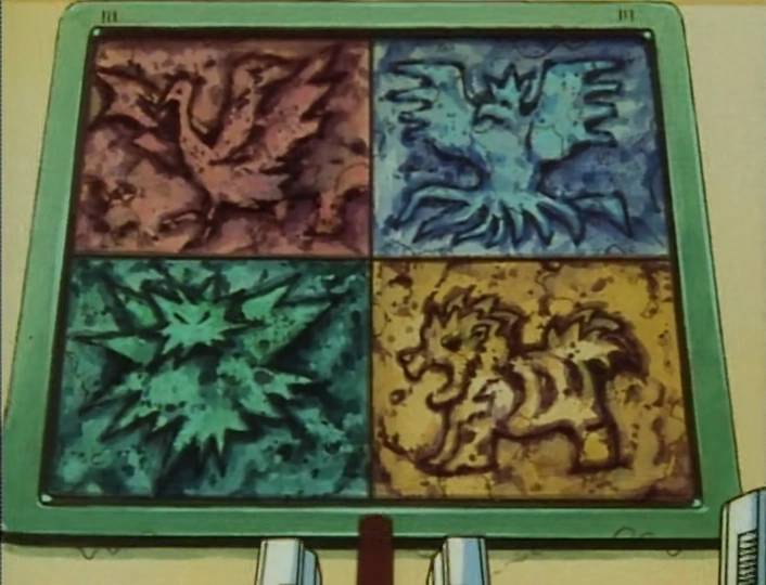 Ryciny "Legendarnych Pokémonów" w EP002: Moltres, Articuno, Zapdos, oraz Arcanine