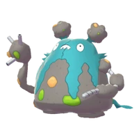 | Sword | Z powodu energii Gigantamax, toksyczny gaz tego Pokémona stał się znacznie gęstszy, krzepnąc w masy w kształcie odrzuconych zabawek. |