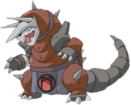 Aggron plays an important role in Pokémon Conquest, as the Partner of Ieyasu, the Warlord of Valora, with a +2 Iron Head.