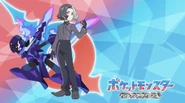 One year later, after Liko, Zirc and Onia managed to track him down, it is revealed that Amethio has been hiding himself away from Spinel and out of guilt towards Gibeon's death, with Ceruledge defending him from Spinel's henchmen that planned to capture him. Amethio is happy that his subordinates are safe, and he would confide his past in Liko, while also telling her that he doesn't have the courage to face Hamber out of shame. After having a short battle by sending Ceruledge against Liko's Charcadet, Amethio regains his drive to defeat Spinel, and receives the Zygarde Cube from Zirc and Onia, whom he advises to return to Explorers while he works alone to figure out a plan for the time being.[2] Later, when Amethio loses balance and almost falls off his Corviknight in a storm, he is saved by Mighty G. While waiting for the storm to be over, Amethio learns some basic survival skills, such as making curry rice and drying his own clothes. Thanks to Mighty G's encouragement, Amethio has consolidated his faith in his Pokémon, and continues his journey after thanking Mighty G's help.[18]