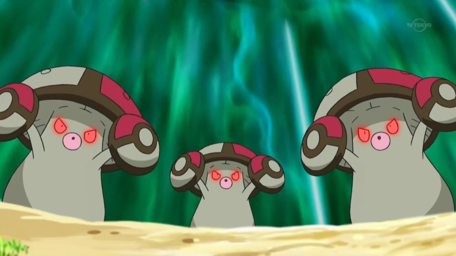 These Amoonguss are a group of grass/poison-type Pokémon who appeared in Team Plasma's Pokémon Power Plot!.
