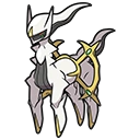 Arceus also has a streak of gold coloration on its head, and ears that point upward. Its neck is fairly long, with two pairs of extrusions to the sides, and a flap-like feature on the neck's underside that is colored white like much of the body. It also has a golden cross-like wheel attached to its body by its round abdomen, which changes color along with its eyes and hooves based on Arceus's current type. The wheel also has four jewels attached to it. The pattern of striated gray of Arceus's underbelly resumes past Arceus's waist, the underside of Arceus's limbs also being gray in coloration, and with extrusions at the tops of the legs. Arceus's tail is fairly like its mane in shape and coloration.