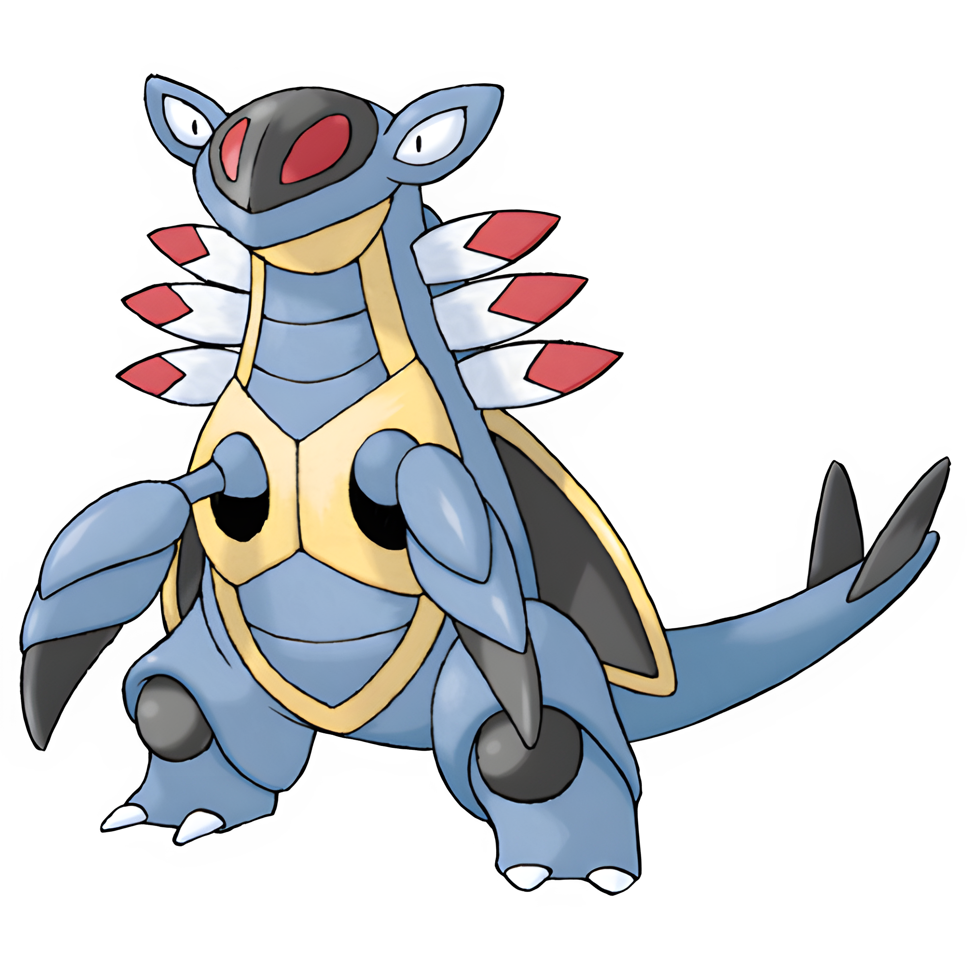 With its huge claws and armored body, Armaldo is well equipped for battle. It is amphibious, capable of Swimming with its wings and walking on land. Armaldo's claws can smash rocks and punch through steel, and can freely retract and extend.
