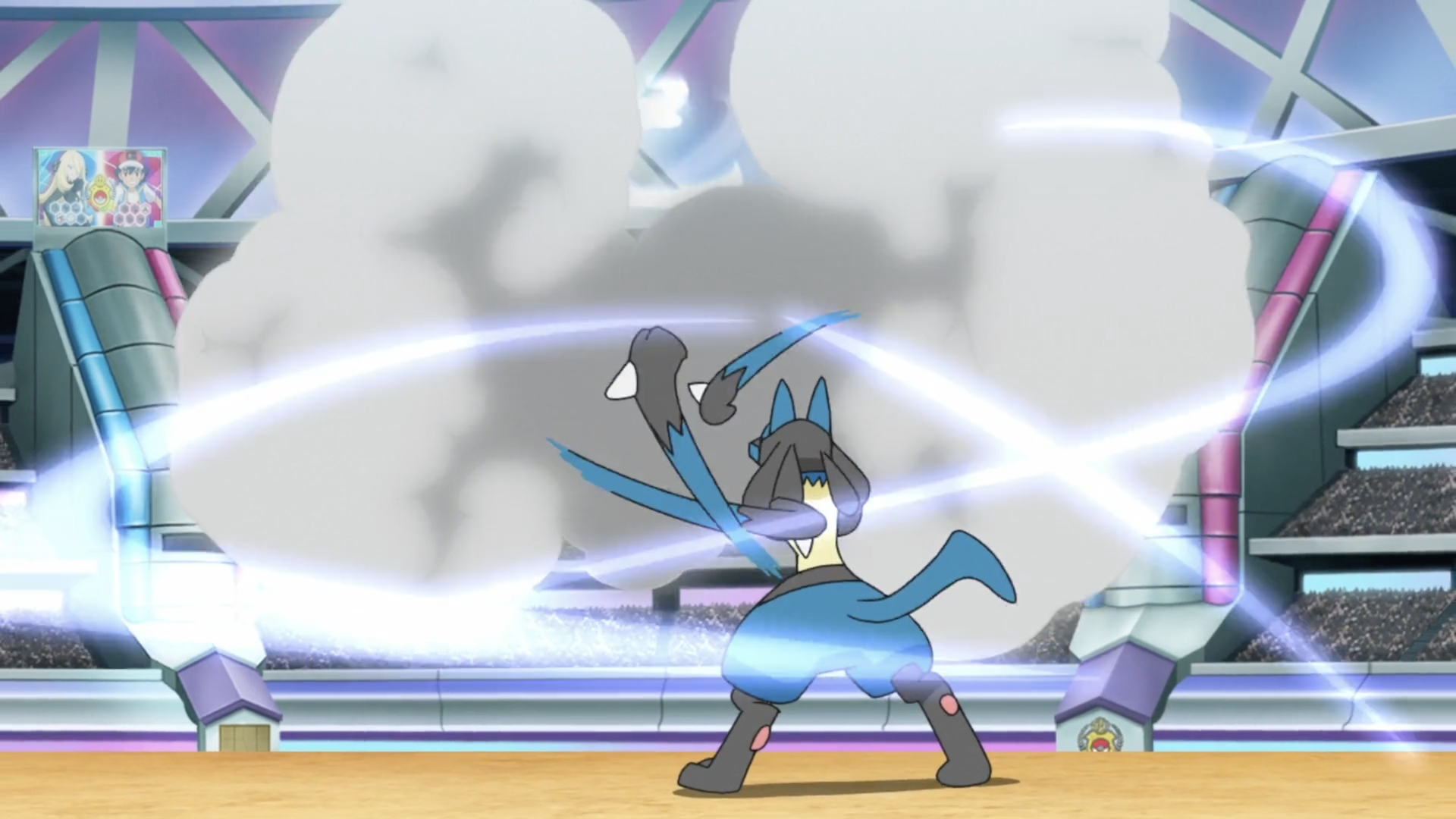 - ^ Mega Lucario knew this move as a Riolu, but executed it in 'PJ125: Whittle While You Work!'