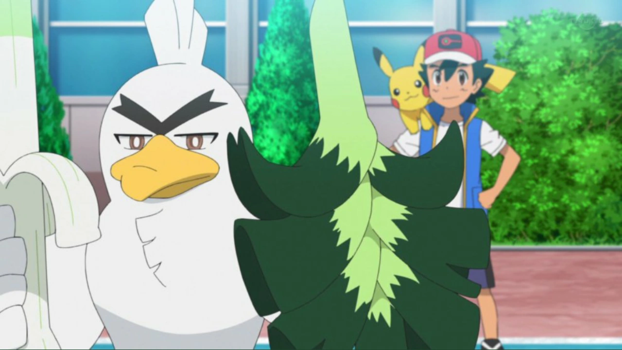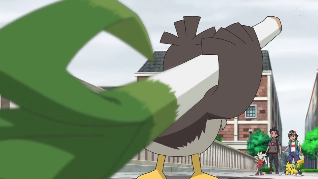 Ash, and Goh encounter their first Galarian form Pokémon, Farfetch'd.