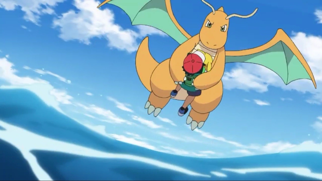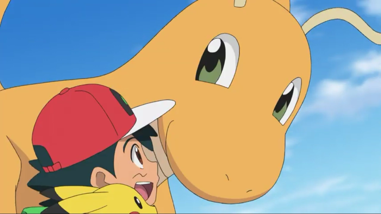 Ash and Dragonite.