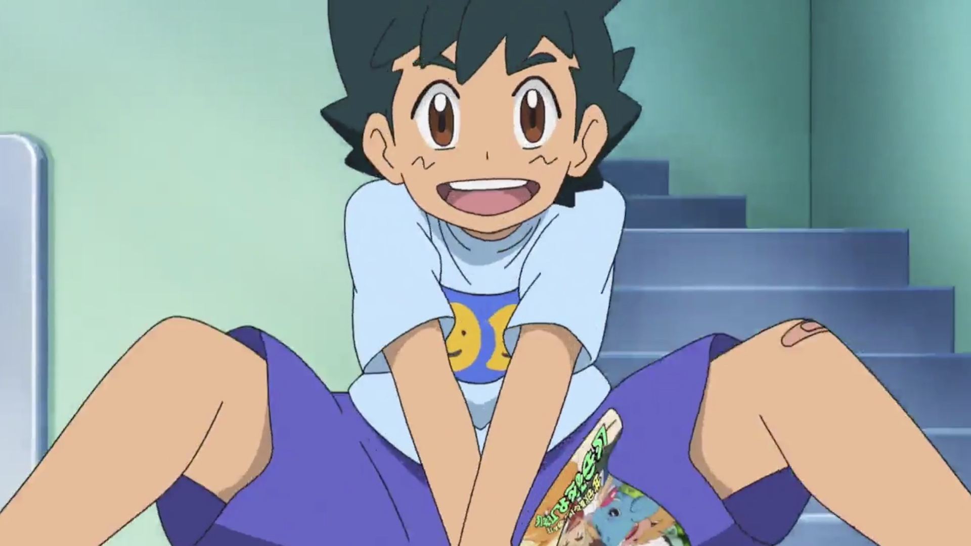 Ash help Goh train his Magikarp for a jumping competition but was bumped when it didn't return to earth. However, after investigating Slowpoke Islands, Ash and Goh sees that the latter Magikarp made its return.[25]