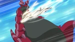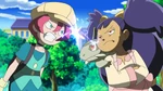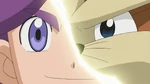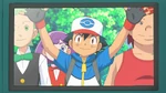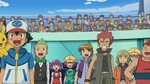 Soon the matchups are announced, and the action gets under way. Iris’s rival, “Dragon Buster” Georgia, is up first, and her Beartic quickly takes down her opponent’s Joltik. Later, Ash faces off against Burgundy, Cilan’s old rival and fellow Pokémon Connoisseur! Confident as ever, Burgundy chides Ash for not completely replacing his Pokémon team as she recommended during their last meeting, but our hero and his Palpitoad manage to defeat Burgundy and her Stoutland!