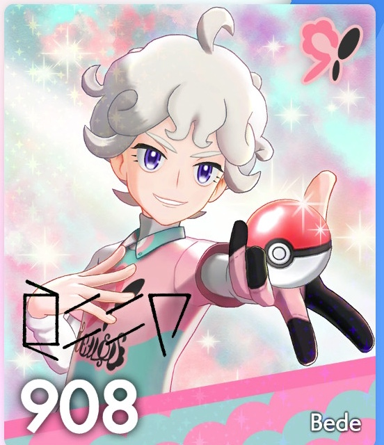 Bede is a character appearing in Pokémon Sword and Pokémon Shield as one of the rivals. He is one of the people who once received endorsement from Chairman Rose but later had his Gym Challenger status revoked. Opal recruited him to be her successor of Ballonlea Stadium's Gym Leader soon after.