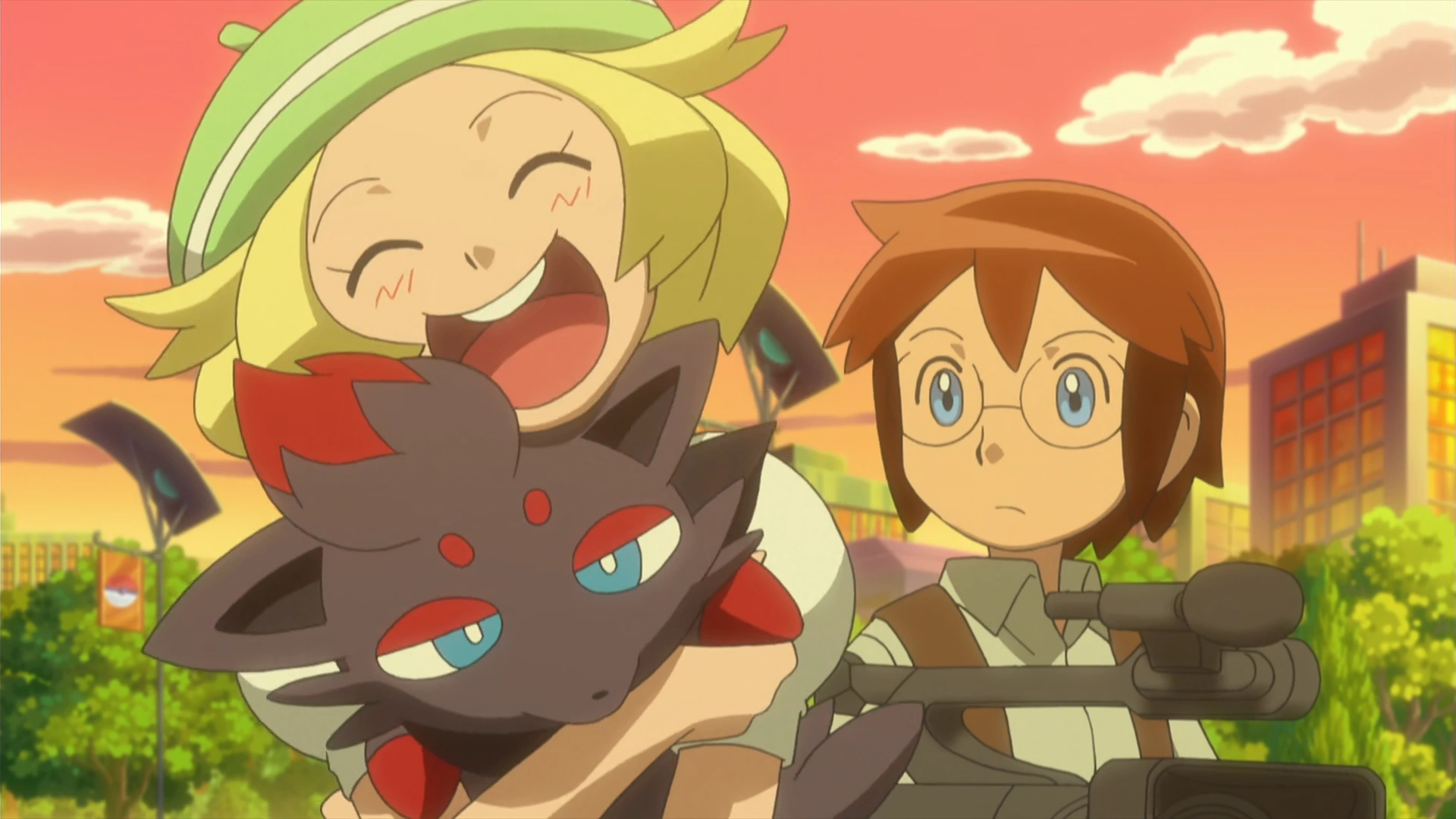 Bianca holds Zorua, still appealed by Zorua's charm.