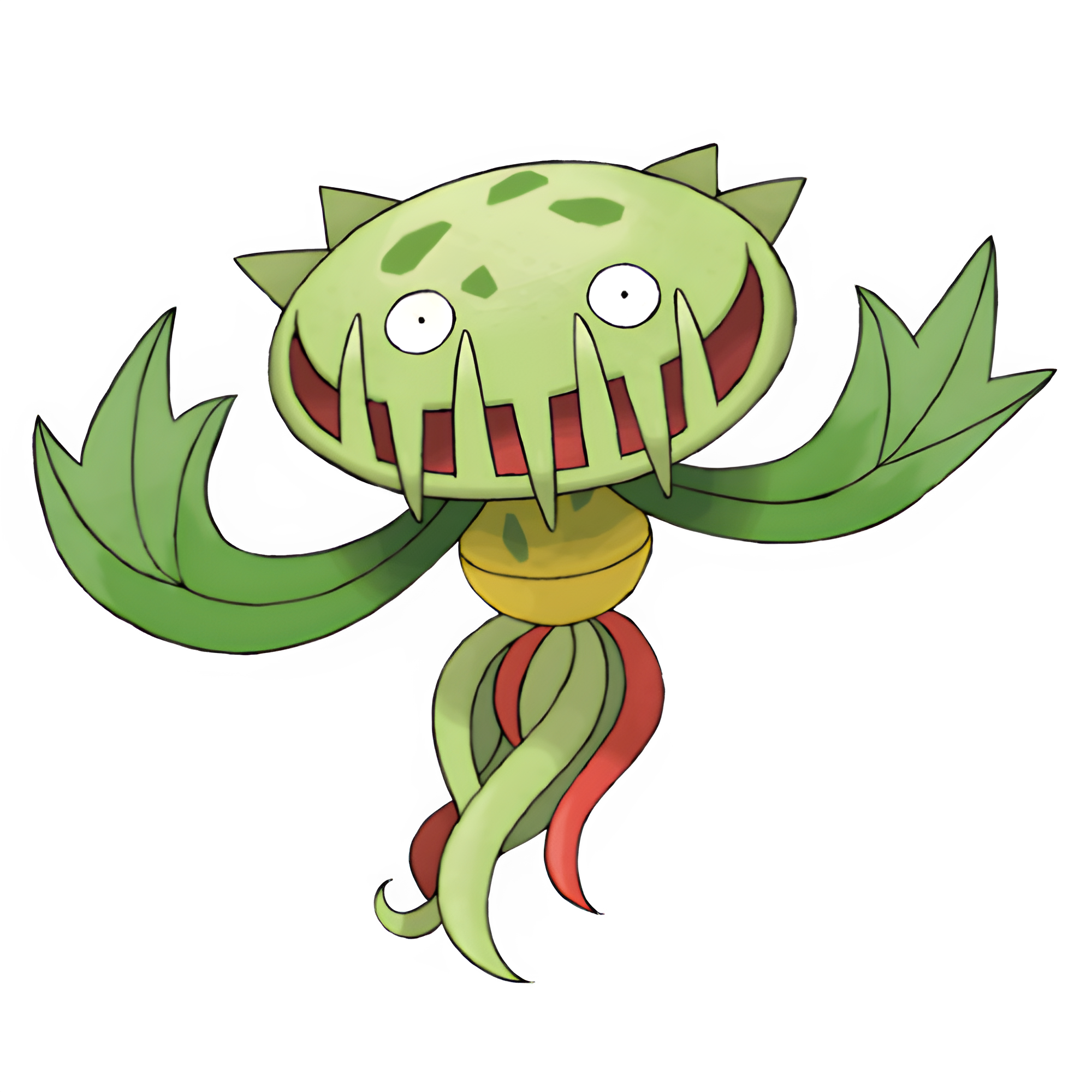 Carnivine only has the ability Levitate which allows it to float in the air and become immune to Ground-type moves. It is said to look like a plant that hangs from branches by using his tentacles. Carnivine lets out its sweet-smelling saliva to attract prey and chomps on the prey. Carnivine takes an entire day to eat its prey.