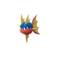 Carvanha looks somewhat like a piranha with a red and blue body with a yellow star on its lower jaw. Its lower jaw has a ragged edge with two teeth sticking out. Its fins are yellow with ragged edges.