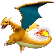 Charizard made its first appearance as a Pokémon that can randomly be summoned from a Poké Ball. When summoned, it uses Flamethrower to attack the other opponents.