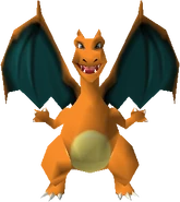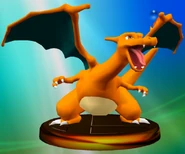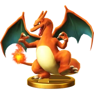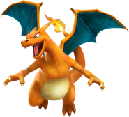 Charizard makes its first appearance as a playable character. It is part of the Pokémon Trainer's rotation along with Squirtle and Ivysaur. If Ivysaur gets low on stamina, they can switch it out for Charizard. If Charizard gets low on stamina, the player can switch it out for Squirtle. Its Neutral Special is Flamethrower, its Side Special is Rock Smash, its Up Special is Fly, and its Down Special is Pokémon Change. When using its Final Smash, all three of the Pokémon come out and attack. Charizard uses Flamethrower to attack. This one is called Triple Finish.