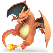 Charizard reappears in Super Smash Bros. Ultimate. It is back to being one of the Pokémon Trainer's Pokémon. Its Down Special went back to Pokémon Change. While it still has Flare Blitz as its Side Special, it is now incapable of using Rock Smash. Also, its Final Smash went back to Triple Finish. Luckily, the stamina feature is now gone for all three Pokémon.