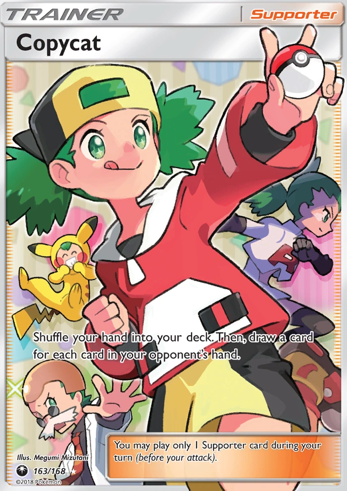 Copycat is very perky and mischievous. She enjoys disguising herself as other people, especially the reactions that she receives. However, she becomes distraught when she loses her favorite Poké Doll.