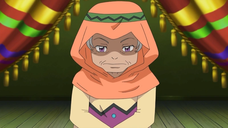 She first appeared in Iris' flashback in The Bloom Is On Axew! when she gave a few-day-old Axew to Iris. She appeared in another flashback in Iris and Excadrill Against the Dragon Buster! when she gave Drayden an assuring look after he beat Iris.