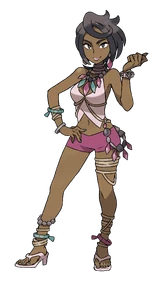- All members of the Paldea Elite Four (and Geeta) wear gloves. Since Larry and Hassel have known jobs outside of the Pokémon League, they have designs without gloves.
