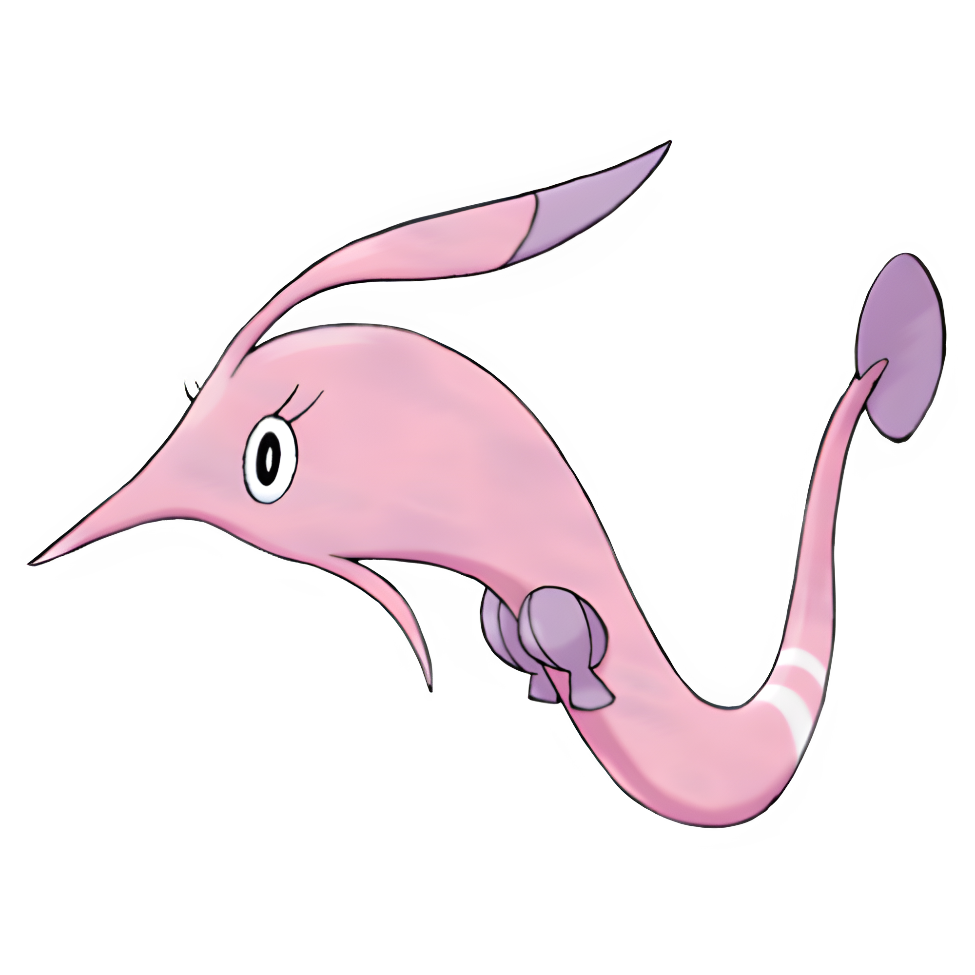 Although Gorebyss is the very picture of elegance and beauty while swimming, it is also cruel. When it spots prey, this Pokémon inserts its thin mouth into the prey's body and drains the prey of its body fluids.